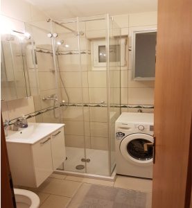 Vlastita kupaonica obuhvaća: tuš kabinu, WC, umivaonik sa ogledalom, perilicu rublja, sušilo za kosu, glačalo i dasku za glačanje rublja.
