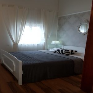 Svaka spavaća soba sadrži bračni krevet (160 x 200) sa novim antialergijskim madracima, 2 noćne komode sa lampama, ventilator, garderobni ormar